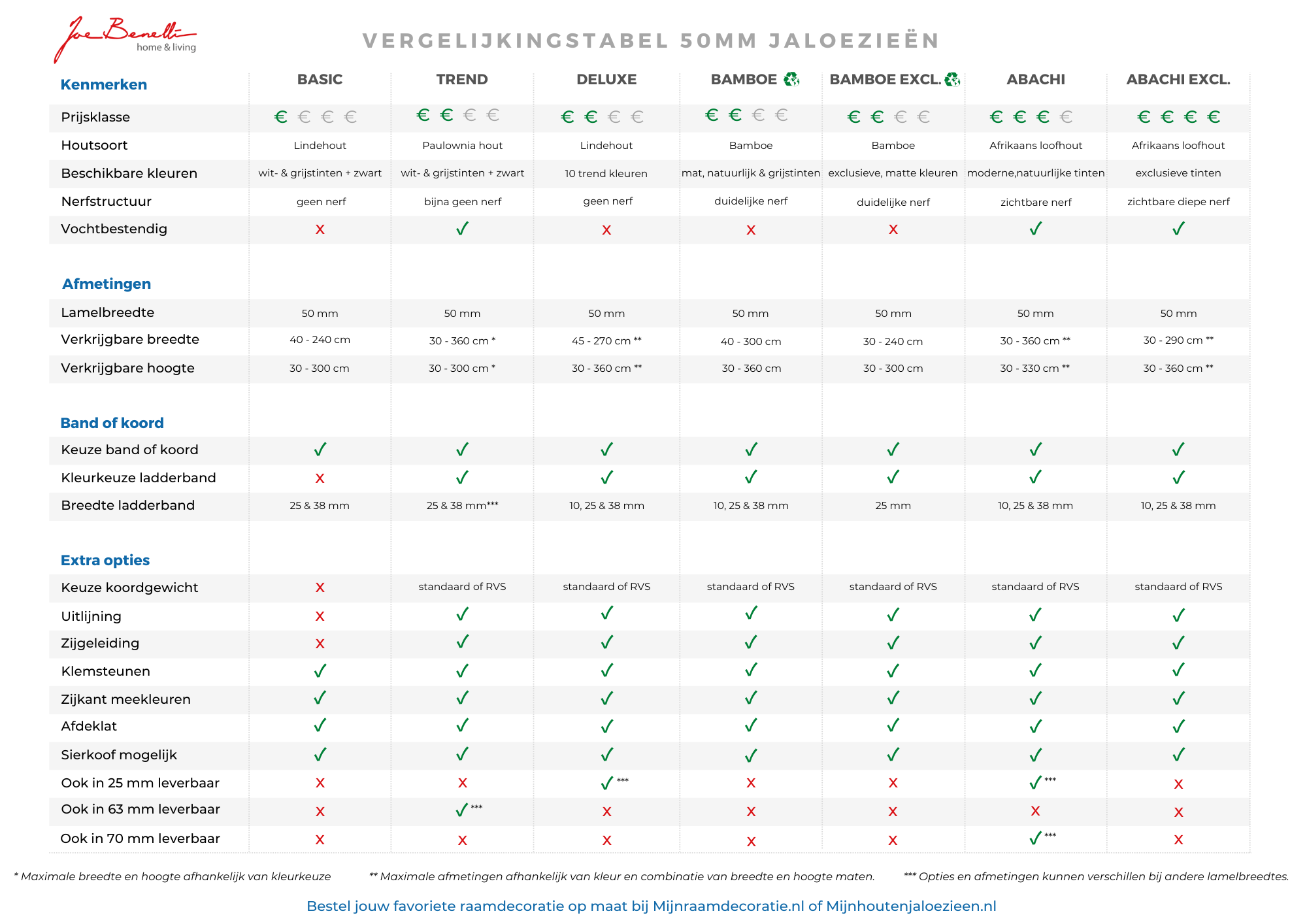 | Jaloeziehoogte | Pakkethoogte | Jaloeziebreedte | Aantal ladderbanden |